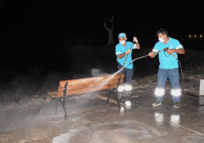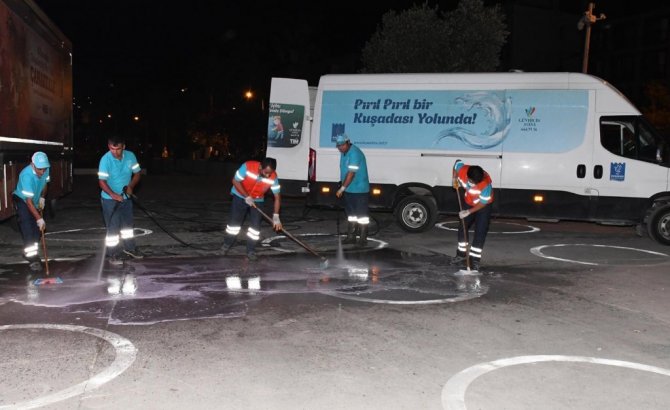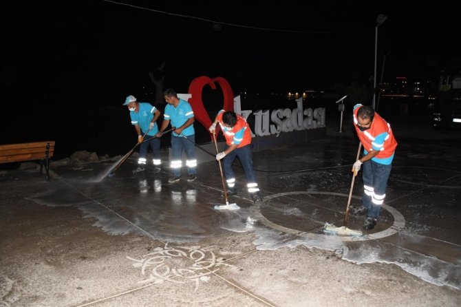 Kuşadası Belediyesi’nin hijyen savaşçılarından normalleşme mesaisi