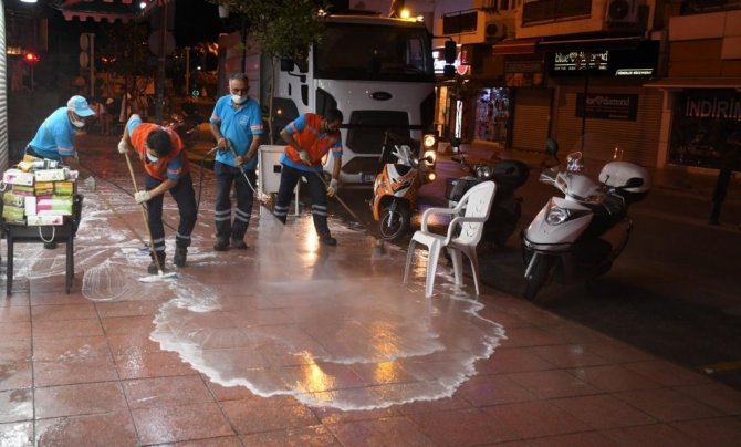 Pandemi sürecinde yürüttüğü çalışmalarla Türkiye'nin en başarılı 4'üncü ilçe belediyesi olan Kuşadası Belediyesi, kenti kademeli normalleşmenin 3'üncü aşamasına hazırlamak için gerekli çalışmaları tamamladı. Bu kapsamda Temizlik İşleri Müdürlüğü'ne (TİM) bağlı ekipler, 7/24 esasına göre yürüttükleri mesai ile kentin tüm sokaklarını köşe bucak temizleyerek dezenfekte etti.