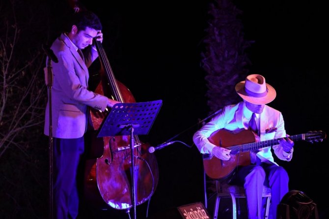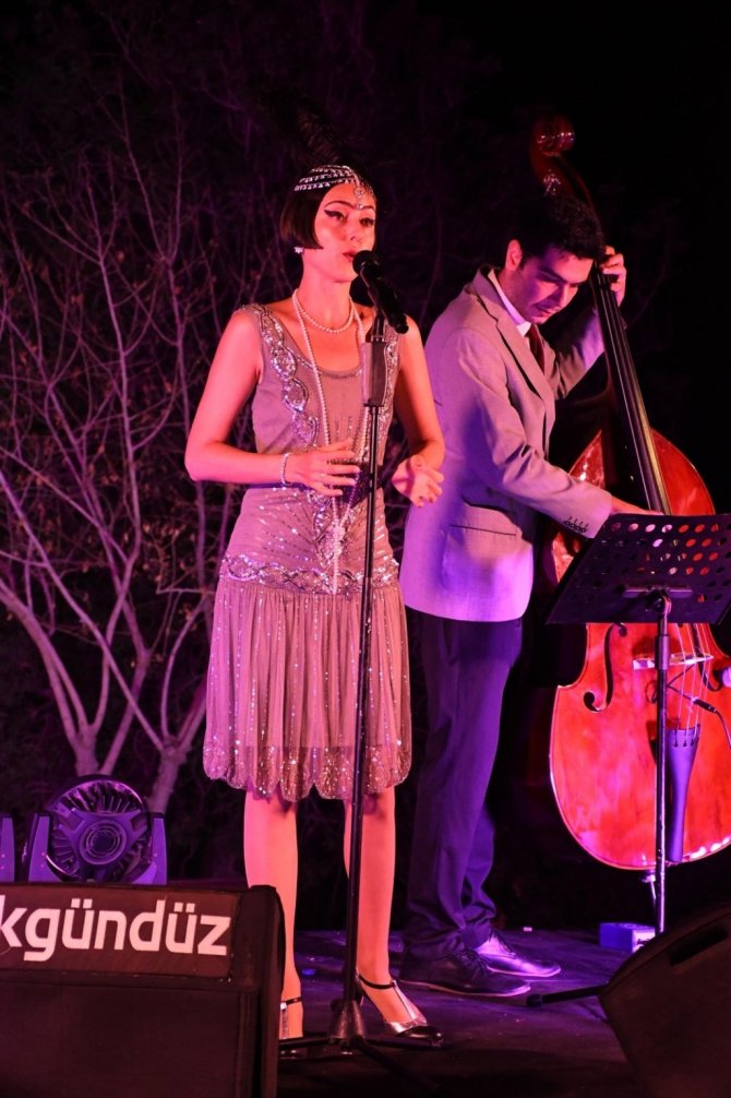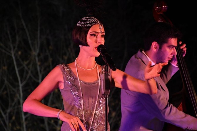 1920'li ve 30'lu yılların caz esintilerini Kuşadası'na taşıyan grup, kostümleri ve sahne performansları ile sanatseverlere unutulmaz bir gece yaşattı.