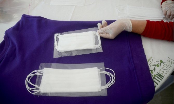 Kuşadası emek atölyesi, çocuklar için maske üretimine başladı