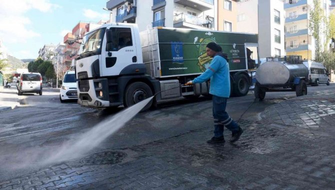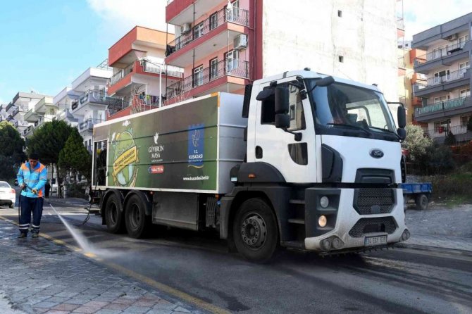 Kuşadası Belediyesi'ne bağlı Temizlik İşleri Müdürlüğü ekipleri, hijyen ve dezenfeksiyon çalışmalarını ara vermeden sürdürüyor. Her gün düzenli olarak kent genelinde temizlik yapan ekipler, belirlenen program dahilinde de farklı mahallelere yoğunlaşıyor. Bu kapsamda Temizlik İşleri ekiplerinin Karaova Mahallesi'nden sonraki durağı İkiçeşmelik Mahallesi oldu.
