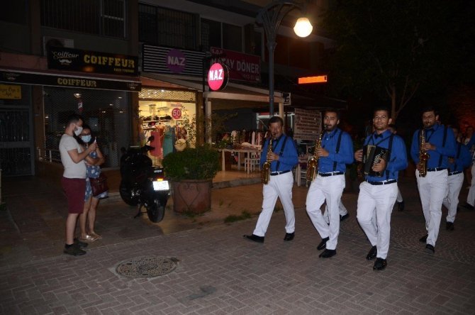 Kuşadası Belediyesi tarafından kurulan “Kuşadası Kent Orkestrası” kentin farklı noktalarında konser vermeye devam ediyor. Kuşadası’nın en işlek yerlerinden biri olan Sevgi Sokak’ta gerçekleşen konsere vatandaşlar yoğun ilgi gösterdi.
