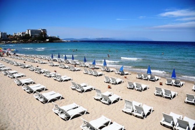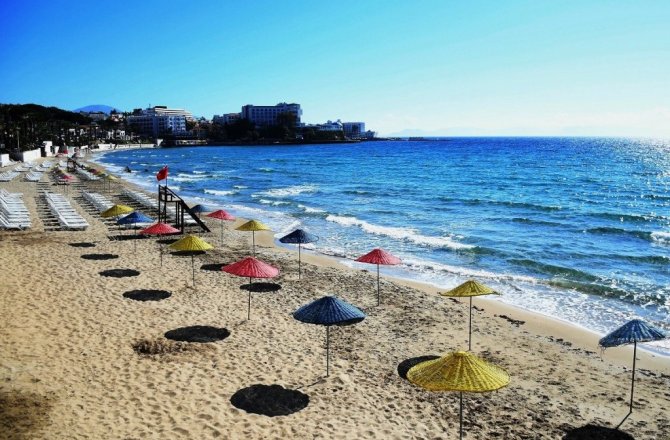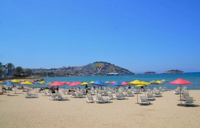 Kuşadası mavi bayraklı plajları ile misafirlerini bekliyor