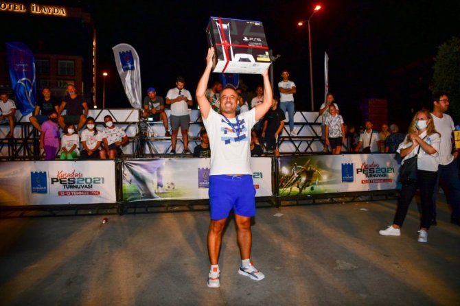 Kuşadası PES 2021 Turnuvası'nın final maçı Yusuf Akçin ile Kutay Arslan arasında oynandı. 20 dakika üzerinden yapılan karşılaşmanın normal süresi 6-6 beraberlikle bitince penaltı atışlarına gidildi. Penaltı atışlarında Akçin, rakibini 4-2 mağlup ederek mutlu sona ulaştı. Büyük sevinç yaşayan başarılı oyuncu, PlayStation 5 ödülünü Belediye Meclis Üyesi Hayati Atlı'nın elinden aldı.