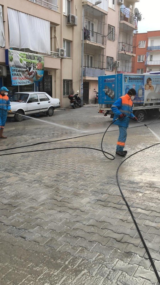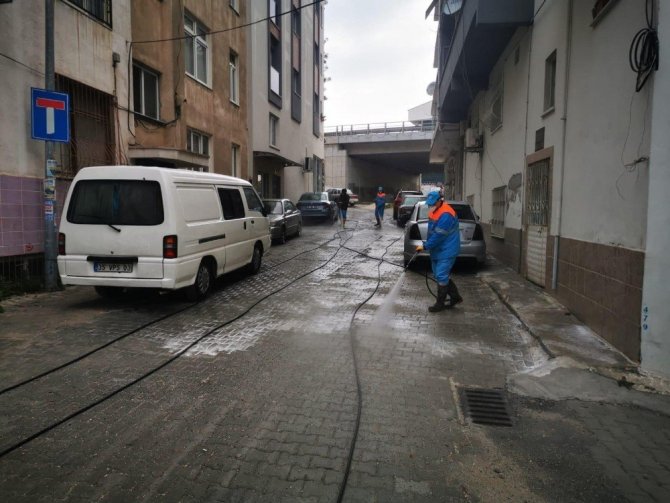 Çin’in Vuhan kentinde ortaya çıktıktan sonra dünyayı etkisi altına alan ‘Korona virüs’ (Covid 19) hastalığının Türkiye’ye sıçramasının ardından teyakkuza geçen Kuşadası Belediyesi, salgınla mücadele çalışmalarına hız kesmeden devam ediyor. Belediye Başkanı Ömer Günel’in talimatıyla ilçedeki her sokak ve caddeyi karış karış dolaşıp 80 derece sıcaklıktaki köpüklü suyla yıkadıktan sonra özel ilaçlarla dezenfekte eden Temizlik İşleri’ne bağlı ekipler, salgının bulaşmasını önlemek için son olarak İkiçeşmelik Mahallesi’nde detaylı hijyen çalışması yaptı.