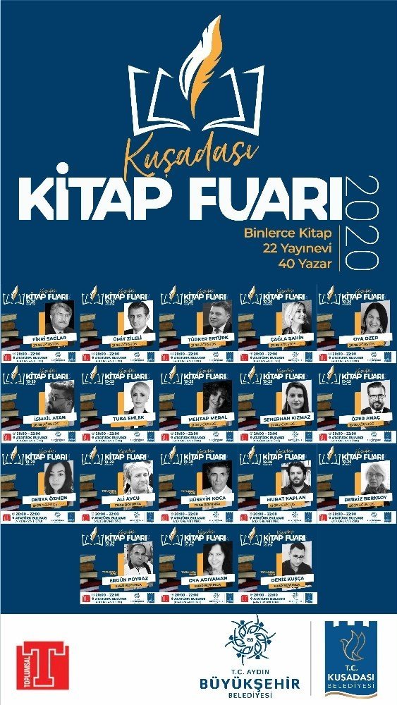 Aydın Büyükşehir Belediyesi ile Kuşadası Belediyesi tarafından düzenlenecek olan Kuşadası Kitap Fuarı, 19 Ağustos’ta Atatürk Meydanı’nda başlayacak. 19-29 Ağustos tarihleri arasında Atatürk Meydanı’nda gerçekleşecek olan kitap fuarında 22 farklı yayınevinin standı olacak. Türkiye’nin en çok okunan 40 yazarı imza ve söyleşi günleri ile okurlarıyla buluşacak. Koronavirüs (Covid-19) tedbirleri kapsamında uygulanan kurallar dikkate alınarak gerçekleşecek olan fuara, binlerce edebiyat severin katılması bekleniyor.