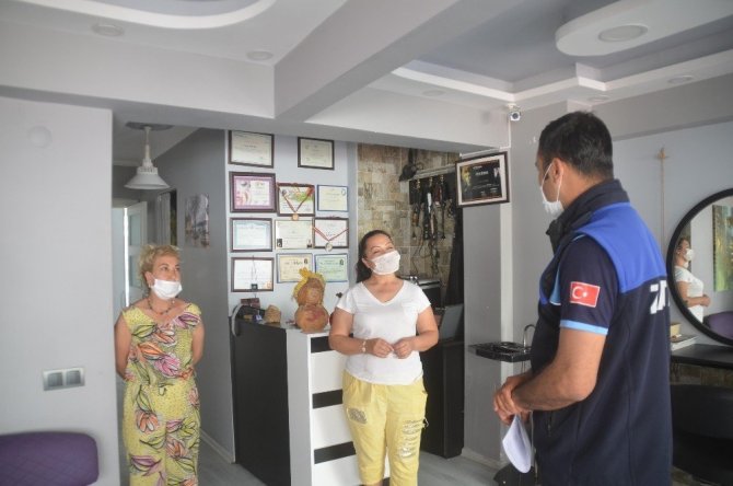 Kuşadası’nda polis, zabıta ve sağlık ekipleri ilçedeki alış veriş merkezleri ve pazaryerleri ile berber ve kuaförleri denetledi.