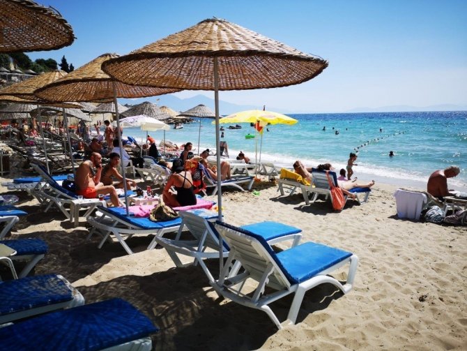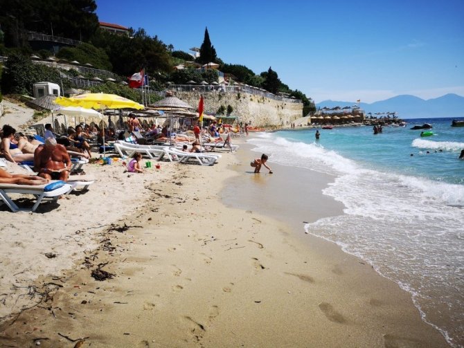 Bu arada, bayram tatili ile birlikte yoğun bir tatilci akınına uğrayan Kuşadası’nda sokaklar ve sahil bandı doldu. Kuşadası’nda plajlar da bayramda tatilcilerin akınına uğradı. Hava sıcaklığının da etkisiyle plajlara koşan tatilciler, deniz, kum ve güneşin keyfini doyasıya yaşamaya başladı.