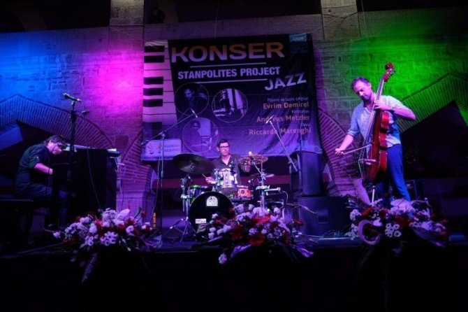 Kuşadası Tarihi Öküz Mehmet Paşa Kervansarayı, piyano ve tuşlu çalgılarda Kuşadalı müzisyen Evrim Demirel’in, kontrbasta Andreas Metzler’in, davulda Riccardo Marenghi’nin yer aldığı Stanpolites Projec...