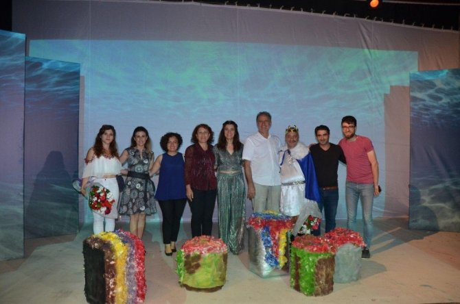 Kuşadası Belediye Tiyatrosu tarafından Dünya Çevre Günü kutlamaları kapsamında sahnelenen Kuşadalı Yazar F. Özel Arabul’un kaleme aldığı “Denizin Dibinde Zil Sesi” adlı oyun iki günde 450 çocukla bulu...