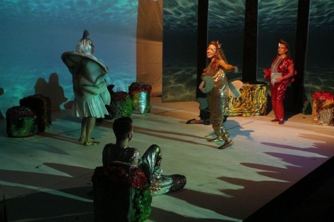 Kuşadası Belediye Tiyatrosu oyuncularından Seza Arayancan Toraman, Filiz Sarıöz Batı, Sibel Arman, Ayşe Tüysüz, Tuğba Yıldırım, Mehmet Toptaş ve Zafer Til’in rol aldığı, yönetmenliğini Nurten Helik’in, yönetmen yardımcılığını Hakan Kutay Pekgöz’ün, ses, ışık ve ses tasarımını Hakan Kutay Pekgöz ile Adem Ergün’ün, müzik düzenlemelerini Zeynep Gergin’in, dekor tasarımını ise Cengiz Sülüç’ün yaptığı “Denizin Dibinde Zil Sesi” isimli oyun, iki gün boyunca üç kez sahnelendi. Oyunun son seansını minik öğrencilerle birlikte Kuşadası Belediye Başkan Yardımcısı Ayşe Şerifoğlu, Temizlik İşleri Müdürü İrem Şahin ve KEGEV Başkanı Şefik Sözer de izledi.