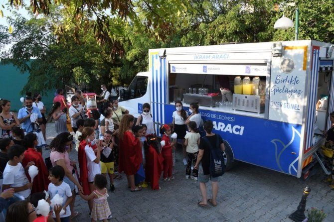 Şenlikte öğrencilere ve ailelere Kuşadası Belediyesi Mobil İkram Aracı'ndan limonata ve kek servisi yapıldı. Ayrıca pamuk şeker, mısır ve balon dağıtıldı. Maskotlar, palyaçolar, masal kahramanları, yüz boyama ve tiyatro gösterilerinin yer aldığı şenlikte Kuşadalı minikler keyifli vakit geçirdi. Renkli görüntülere sahne olan etkinlikte ayrıca Kuşadası Kent Orkestrası mini bir konser verdi.