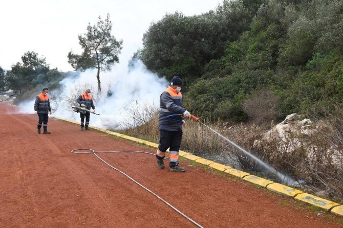 Kuşadası Belediyesi, yeni tip korona virüs salgınına karşı yürüttüğü mücadelenin yanında, halk sağlığını tehdit eden sinek ve haşerelere karşı ilaçlama çalışmalarını da aralıksız sürdürüyor.