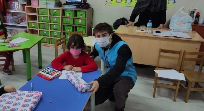 Aydın'ın Kuşadası ilçesinde gönüllü öğrenciler, "Hayaller Gerçek Olsun" projesi kapsamında minik öğrencilere yüzlerce hediye dağıttı.
