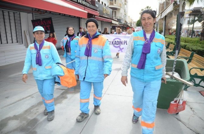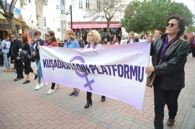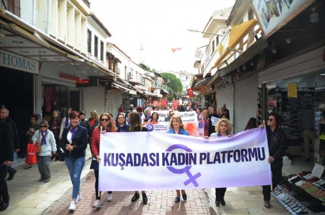 Kuşadası Belediyesi’nin öncülüğünde çok sayıda sivil toplum kuruluşu ve siyasi partinin katılımıyla yapılan yürüyüşe Kuşadalı kadınlar büyük ilgi gösterdi.