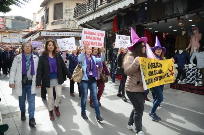 Kuşadası’nda kadınlar günü yürüyüşüne büyük ilgi