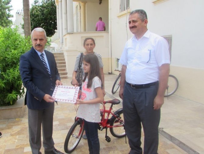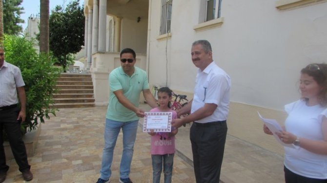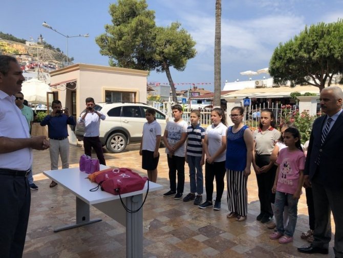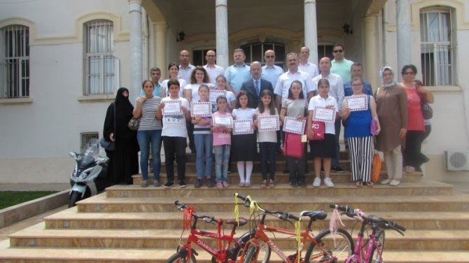 Öğrenciler, Kuşadası Kaymakamlığında yapılan törende ödüllerini İlçe Kaymakamı Muammer Aksoy’un elinden aldı.
