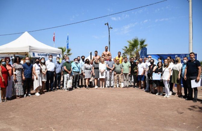 Törenin ardından Kuşadası'ndaki 25 Mavi Bayraklı plajda görev yapan cankurtaranların katıldığı bir yüzme yarışması düzenlendi. 17 cankurtaranın kulaç attığı 100 metrelik serbest yüzme yarışı renkli görüntülere sahne oldu. Yarışı ilk olarak bitirerek Mavi Bayrağı alan cankurtaran Mert Vardar oldu. Yarışmada 2'nciliği İlker Gümüş elde ederken ARYA Turistik Tesisileri A.Ş'de görevli Resul Cemal Yalçın ise 3'üncü oldu. Yüzme yarışında dereceye girenlere madalyalarını Kuşadası Belediyesi Meclis Üyesi Tibet Özer verdi.