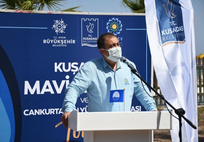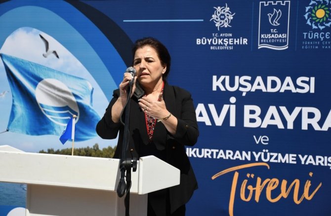 Aydın Çevre ve Şehircilik İl Müdürü Yardımcısı Emine Sert ise "Mavi Bayrak, ülkemiz ve ilimiz için çok önemli. Türkiye olarak bu konuda dünyada birinci olmayı hedefliyoruz. Bunun için de denizlerimizi temiz tutmak için elimizden geleni yapmak zorundayız. Marmara Denizi'nde görülen müsilaj umarım bizim denizlerimize de gelmez. Şu an Marmara'ya kıyısı olan 8 ilimizde temizlik çalışmaları devam ediyor. Umarım çok yakın zamanda bu tehlikeden kurtulacağız. Kuşadası'nda şu an altyapı ve arıtma sorunu kalmadı. Kuşadası çok iyi bir seviyeye geldi. Kıyıların temizliği için bizimle iş birliği yapan belediyelerimize teşekkür ederiz" dedi.