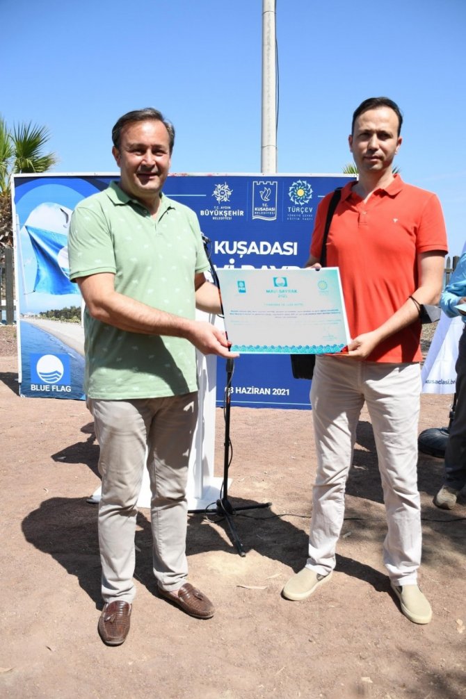 Törende sahip oldukları Mavi Bayrakları koruyan 25 plaj ile 1 marinaya ödülleri verildi. Kuşadası Belediyesi ayrıca bir kez daha TÜRÇEV tarafından verilen "En İyi Çevre Eğitim Etkinlikleri" ödülüne layık görüldü. Mavi Bayrak almaya hak kazanan plaj ve marina işletmecileri sertifikalarını Kuşadası Belediye Başkan Yardımcısı Seyfi Seyhan Suvari ve diğer protokol üyelerinin elinden aldı. Sertifika töreninin ardından 2021 yılında Sevgi Plajı'na verilen Mavi Bayrak, Kuşadası Belediyesi ve TÜRÇEV yetkilileri tarafından göndere çekildi.