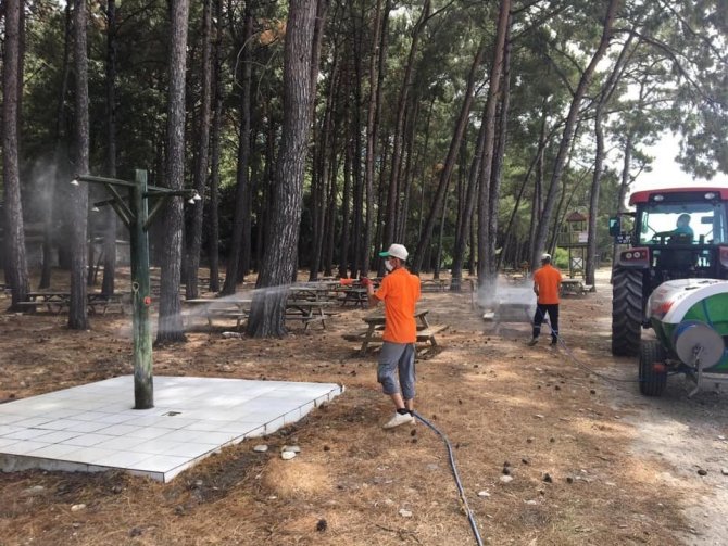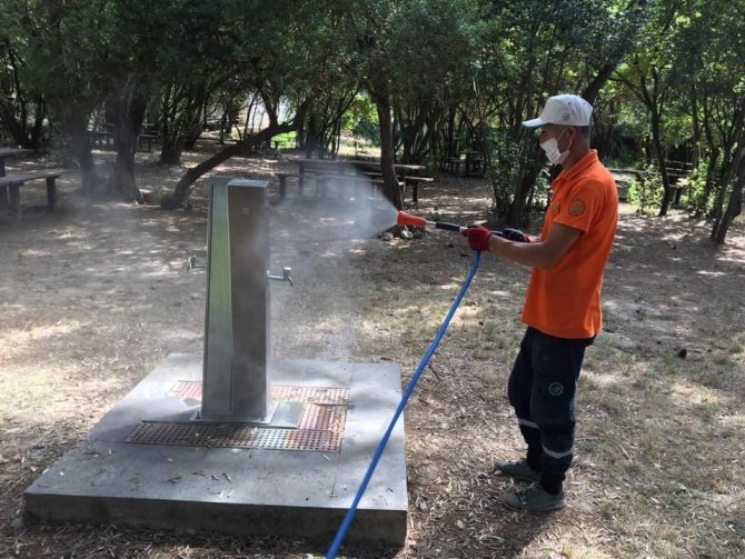 Kuşadası’nda Milli park dezenfekte edildi