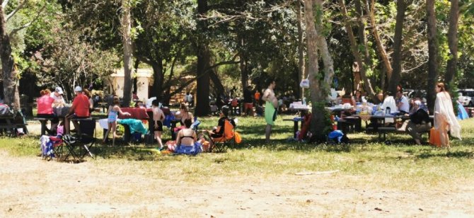Türkiye'nin en önemli turizm kenti Kuşadası'ndaki sahillerde, sabahın erken saatlerinden itibaren dünyaca ünlü Kadınlar Denizi Plajı, Büyük Menderes Deltası Dilek Yarımadası Milli Parkı'na gelen vatandaşlar, denizin, kumun ve güneşin tadını doyasıya çıkardı. Hava sıcaklığının 34, deniz suyu sıcaklığının 24 derece ölçüldüğü kentte, sıcak havadan bunalan Kuşadalılar, kumsallarda voleybol oynadı, bol, bol güneşlenip, denizden çıkmadı.