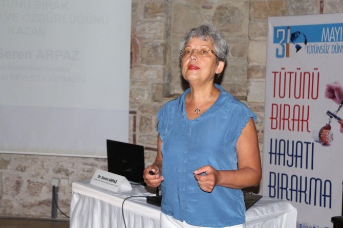 Konferansta Dr. Arpaz katılımcılara tütün kullanımının insan sağlığı üzerindeki etkilerini aktardı.