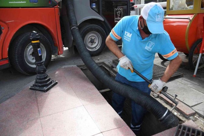 Kuşadası’nda Yağmur Suyu Mazgalları Yağışlar Öncesi Temizlendi