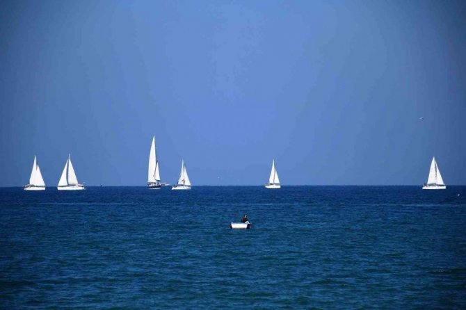 Kuşadası’nda yelkenler Cumhuriyet Bayramı dolayısıyla denizde kortej oluşturdu