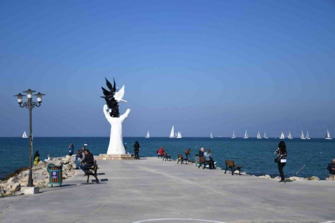 Türkiye Cumhuriyeti'nin kuruluşunun 98'inci yıl kutlamaları kapsamında Kuşadası Körfezi'nde deniz ve yelken tutkunlarını buluşturan "Cumhuriyet Regattası" isimli bir yarış düzenlendi. Kuşadası Belediyesi'nin ve paydaşların katkılarıyla gerçekleştirilen yarışa 23 yelkenli ve 110 yelkenci katıldı. Yarışın ilk gününde Marina'dan hareket eden yelkenliler tarafından İsmail Cem Dostluk ve Barış Meydanı açıklarında önce kortej oluşturuldu. Kortej halinde Güvercinada'ya kadar hareket eden yelkenliler dönüşlerini tamamladıktan sonra Özdere ve Ahmetbeyli yönüne yelken bastı. Yarışmada ilk gün toplam 14 mil yol kat edilecek.