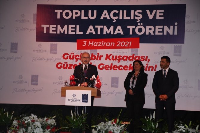 CHP'li belediyelerin insan onurunu koruyarak sosyal yardımlarını arttırdığını dile getiren Kılıçdaroğlu, "Önümüze engeller çıkarılıyor, baskı yapılıyor. Ancak hep dediğim gibi şikâyet etmeden bunları aşacak ve Türkiye için çalışmaya devam edeceğiz. Biz gücümüzü onurlu insanlardan ve elbette tarihten, Gazi Mustafa Kemal Atatürk'ten alıyoruz. Bunları hep birlikte başaracağız. Belediye başkanlarımıza açılışını yaptıkları ve temelini attıkları tüm yerler için yürekten teşekkür ediyorum" şeklinde konuştu.