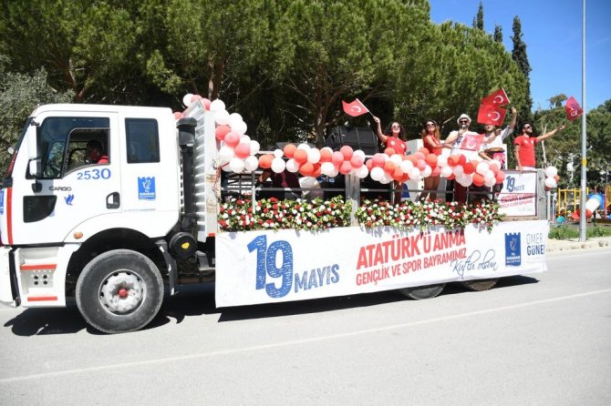 Aydın'ın Kuşadası ilçesinde Ulu Önder Gazi Mustafa Kemal Atatürk'ün milli mücadeleyi başlatmak üzere Samsun'a çıkışının 102'nci yıl dönümü, pandemiye rağmen coşkuyla kutlandı. Sabah Atatürk anıtına çelenk konulmasıyla başlayan kutlama programı, öğleden sonra Kuşadası Belediyesi'nin düzenlediği özel etkinlikler ile devam etti. Etkinlikler kapsamında, tarihi Kuşadası Belediye Bandosu gün boyunca kentin farklı mahallelerinde sokak konserleri vererek, sevilen şarkı ve marşları seslendirdi. Bandoyla eş zamanlı olarak kırmızı-beyaz balonlar ve Türk bayraklarıyla süslenen özel bir araç ise farklı mahallelerde vatandaşların bayram coşkusuna ortak oldu. Araçta bulunan Dj ve dansçıların kentin faklı noktalarında sergiledikleri canlı performanslar vatandaşların büyük beğenisini topladı.