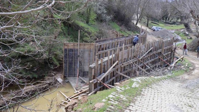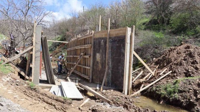 Bağlantı yollarını güvenli hale getirmek için çalışan ekipler, yoğun yağışlarda trafiğin aksamaması için 3 metre yüksekliğe ve 8 metre ene sahip menfez inşa etti.