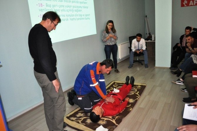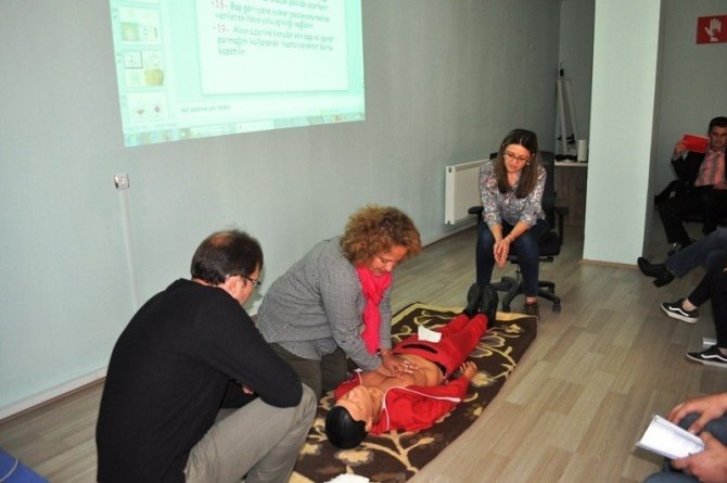 Solunum değerlendirilmesi, nabız değerlendirilmesi, kalp masajı ve yapay solunum gibi birçok konunun detaylı bir şekilde ele alındığı eğitimde, bebeklere, çocuklara ve yetişkinlere ilk müdahalenin nasıl yapılacağı konusu katılımcılara uygulamalı bir şekilde aktarıldı.