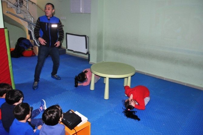 Kütahya İl Afet ve Acil Durum Müdürlüğü (AFAD) tarafından Kütahya Küçük Şeyler Anaokulu öğrencilerine “Afete Hazır Okul” eğitimi verildi.