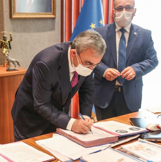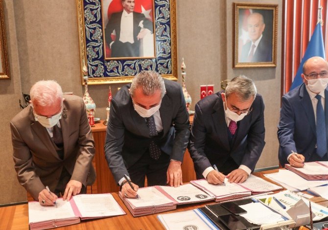 Belediye Başkanı Prof. Dr. Alim Işık'ın makamında Hizmet İş Sendikası Şube Başkanı Sabahattin Ödemiş, Hizmet İş Sendikası Genel Başkan Yardımcısı Halil Özdemir, Mahalli İdareler İşveren Sendikası (MİS) Genel Sekreteri Mehmet Oruçöz, belediye başkan yardımcıları, sendika iş yeri temsilcileri ve işçilerin katıldığı imza töreninde ilk konuşmayı Şube Başkanı Ödemiş yaptı. Ödemiş, "Pandemi nedeniyle zorlu bir süreçten geçildiğini belirten Hizmet İş Sendikası Şube Başkanı Sabahattin Ödemiş Belediye Başkanı Prof. Dr. Alim Işık'ın verilen sözleri yerine getirdiğini söyledi. Şube Başkanı Ödemiş, "Güzel bir sözleşme imzaladık. Başkanımız hem kadrolular hem de doğrudan temindeki arkadaşlara güzel zamlar verildi. Türkiye'de imzalanan sayılı sözleşmelerden birisi oldu" dedi.