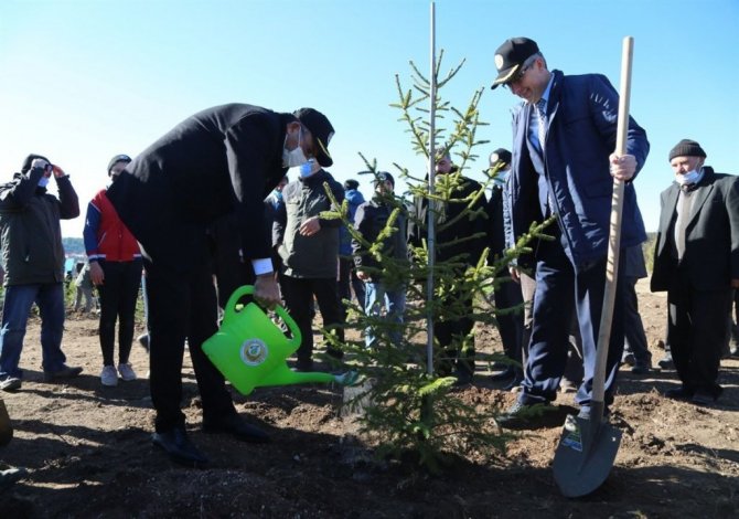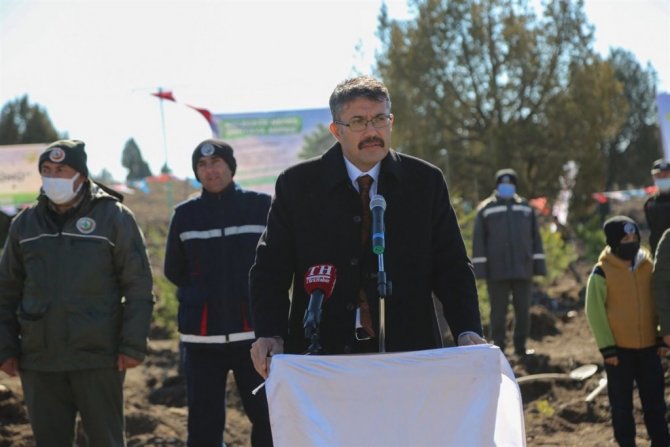 Konuşmaların ardından Vali Ali Çelik, il protokol üyeleri, vatandaşlar ve çocuklar fidanları toprakla buluşturup can suyu verdi.