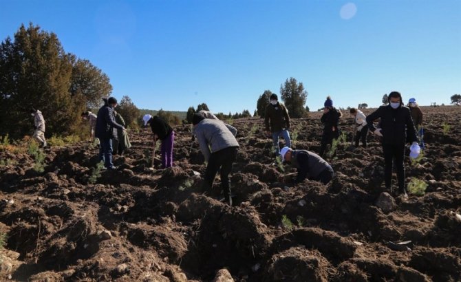 Tarım ve Orman Bakanlığı koordinasyonunda, 81 ilde eş zamanlı düzenlenen "Milli Ağaçlandırma Seferberliği" kapsamında Kütahya'da binlerce fidan toprakla buluşturuldu.