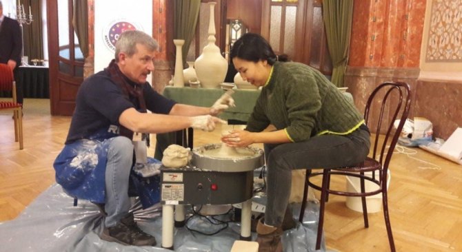 Organizasyona Kütahya Belediyesi’nin davetlisi olarak katılan ve aynı zamanda seramik sanatçısı olan Arş. Gör. Gökhan Akça, ’Türk Çini ve Seramik Sanatı’ konulu sunumunun ardından Pecs Üniversitesi Güzel Sanatlar Fakültesinin öğrencileri ile ’Rölyef Seramik Modelleme Tekniği’ üzerine bir atölye çalışması gerçekleştirdi. Atölye çalışmasında Macar ve Türk halklarının kültür mirasında ortak bir sembol olan efsanevi “Turul (Tuğrul) Kuşu” üzerine Kültür ve Turizm Bakanlığı sanatçılarından Mehmet Yıldırım ve Cemile Gül ile Kütahya Çiniciler Odası Başkanı Sadık Erilbaylı, Kütahyalı çini sanatkarları Mustafa Dumanlar, Ali Kaymak, Hasan Kayış, Cengiz Dayan, Hakan Kulkoç, Ahmet Karakaş ve Fatih Kahraman’ın eserlerinden oluşan sergi hakkında bilgiler vererek, Kütahya’nın çini ve nakış işleme sanatının örneklerini Pécs halkı ile buluşturuldu.