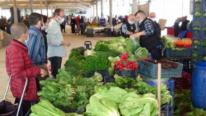 Vatandaşların da yaş sebze-meyve ve fide ihtiyaçlarını temin amacıyla ikametlerine en yakın pazaryerine gidip gelebilmelerine izin verildi. Pazarların etrafları çevrilerek giriş ve çıkışlarına kontrol noktaları oluşturuldu. Ateşi ölçülen, HES kodu sorgulanan ve elleri dezenfektan edilen vatandaşlar kontrollü bir şekilde içeri alındı. İçerde de yine ekipler tarafından sürekli maske, mesafe ve ürünleri elle seçmeme konusunda uyarılar yapıldı. 10 gündür kapalı olan pazarlarda esnafın yüzündeki heyecan dikkat çekerken, fiyatların marketlere göre daha uygun olduğu gözlendi.