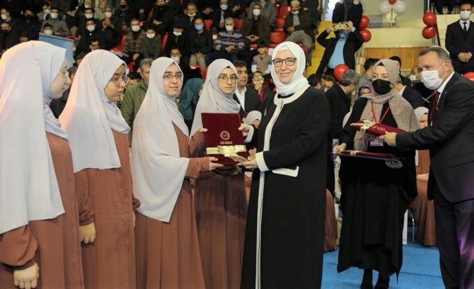 Öğrencilere icazet belgeleri, Vali Ali Çelik, Belediye Başkanı Prof. Dr. Alim Işık ve protokol mensuplarınca takdim edildi.