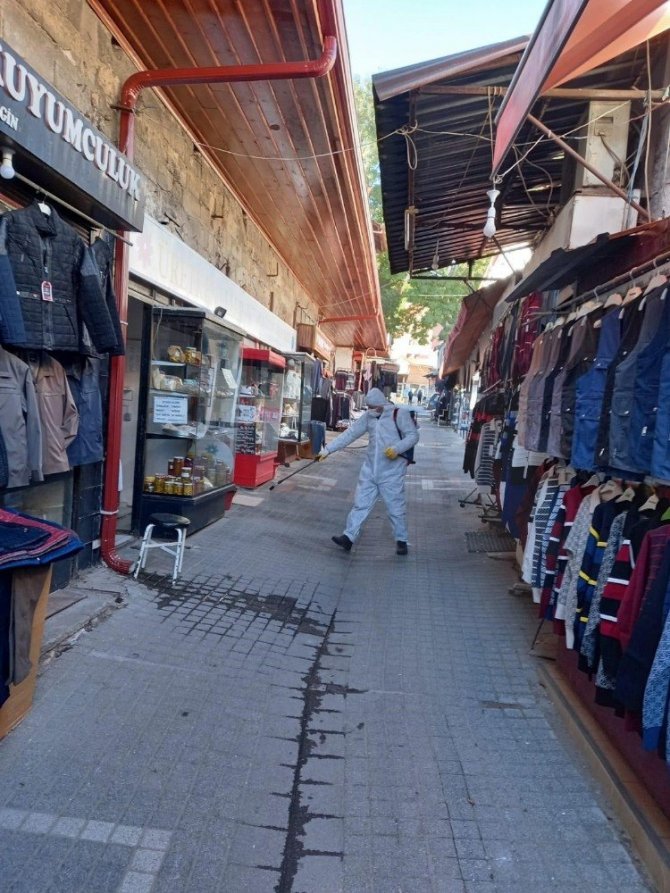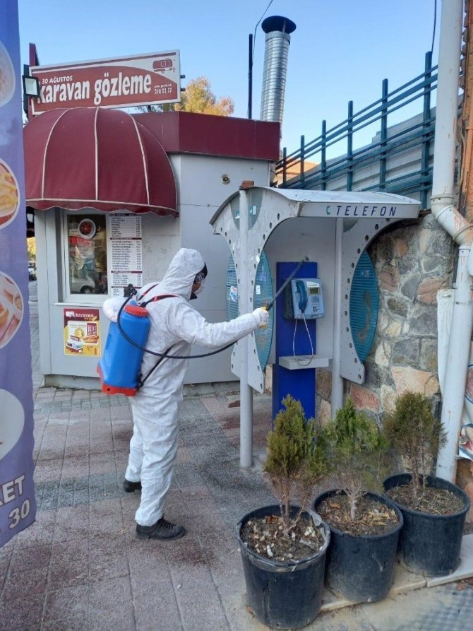 Şehrin en işlek cadde ve sokaklarında da dezenfeksiyon çalışmaları kesintisiz sürdürülüyor.