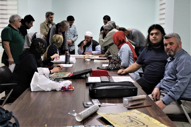 Yazma Eserler Müdürlüğü’nde Hattat Mahmut Şahin’in verdiği derslere 60 hat sanatı gönüllüsü katılıyor.