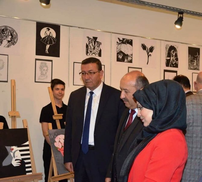 Görsel Sanatlar Öğretmeni Tuğba Gülmez’in organizesinde hazırlanan resim sergisinin açılışına İl Milli Eğitim Müdürü Hasan Başyiğit, İŞKUR İl Müdürü Kamil Uçan, SGK İl Müdürü İsmail Sayar, İl Milli Eğitim Müdür yardımcıları, Şube Müdürleri, Okul Müdürleri ve veliler katıldı.