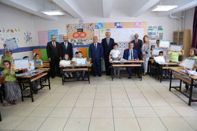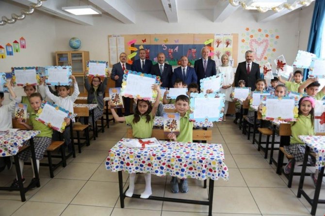 Vali Ahmet Hamdi Nayir, Belediye Başkanı Kamil Saraçoğlu ve Kütahya il protokolü de Abdurrahman Paşa İlkokulu’nda eğitim gören öğrencilerinin karne heyecanına ortak oldu.