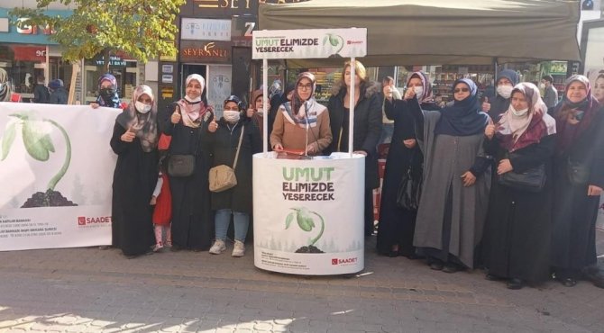Kampanyayla ilgili Kütahya Sevgi Yolu'nda stant açtıklarını söyleyen Kütahya Saadet Partisi Kadın Kolları Başkanı Mine Evren, " Ülke olarak son yıllarda ve özellikle geçtiğimiz yaz aylarında, ciddi boyutta orman yangınları yaşadık. Günlerce süren yangınlar karşısında adeta ciğerlerimiz yandı. Bununla birlikte, yine ülkemiz, yıllardır, bir grup şirketin çıkarları için, beton uğruna; büyük bir yeşil alan kaybına uğradı. Doğa üzerinde meydana gelen tahribat, açılan yara gittikçe derinleşti. Ancak biz bu yarayı, birlikte sarabileceğimize, doğayı hep birlikte yeniden onarabileceğimize inanıyoruz. Yanan ormanlarımızı, mahvedilen doğayı, hep birlikte yeniden yeşerteceğimizi umut ediyoruz. Bütün vatandaşlarımızı "Necmettin Erbakan Umut Ormanı'na birer fidan bağışlamaya davet ediyoruz" dedi.