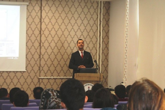 100 öğrenciye sunum yapılan etkinliğe Millî Eğitim Müdürlüğü Temel Eğitim Hizmetleri Şube Müdürü İbrahim Aybek de katıldı.