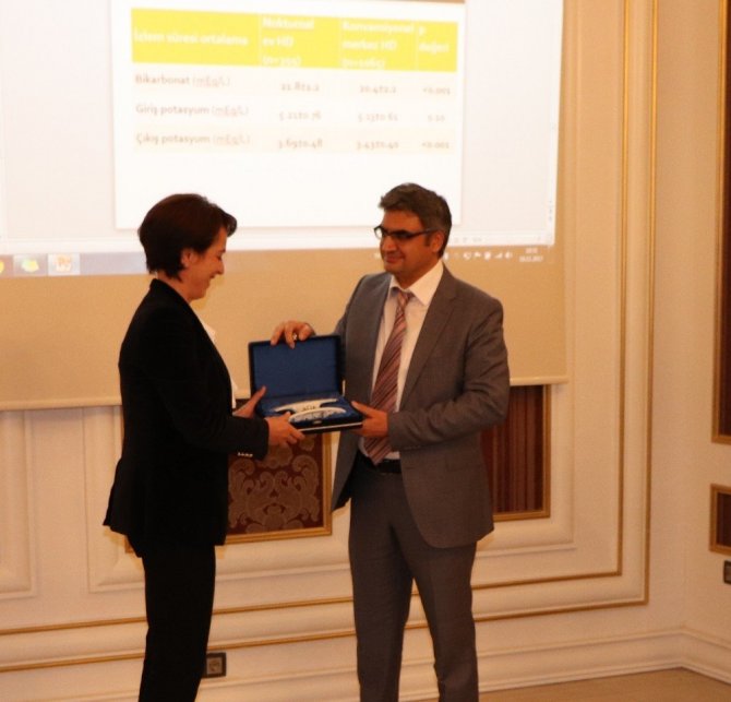 Doç. Dr. Erim Gülcan, “Şu anda dünyada ve ülkemizde en önemli sağlık problemleri arasında yer alan böbrek yetmezliği, özellikle şeker, tansiyon ve böbrek iltihabı kaynaklı olabiliyor. Vücut sıvılarının yapısını, hacim dengesini ve atık ürünleri idrar şeklinde atmamızı sağlayan böbreklerin vücuttaki fonksiyonunu yeteri düzeyde yerine getirememesi sonucu böbrek yetmezliği meydana geliyor. Böbrek hastalıkları erken teşhisle ve düzenli yaşam standartlarının oluşturulmasıyla önlenebilir. Sağlık Bakanlığı ve Sosyal Güvenlik Kurumu’nun destekleriyle ilerleyen Ev Hemodiyalizi, hastaların sağlığına ve yaşam kalitesine olumlu etkiler sağlıyor. Bu yönüyle bizim de önemle ve özenle üzerinde durduğumuz bir tedavi şekli. Bu projeyi bir yıldır Kütahya’da da hayata geçirip, yaygınlaşması için elimizden gelen gayreti gösteriyoruz. Kısa zaman önce ‘Evde Hemodiyaliz’ ihalesini gerçekleştirdik. Bir hastamızın eğitimlerine başladık. Sırada 3 hastamız daha beklemekte. 2018 yılında hedefimiz 10 civarında hastaya ulaşabilmektedir” diye konuştu.