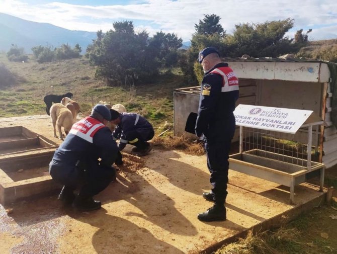 Kütahya İl Jandarma Komutanlığı Çevre Doğa ve Hayvanları Koruma Timi ve Kütahya Belediyesi ekipleri tarafından soğuk hava şartları nedeniyle yeterli beslenemeyen sokak hayvanlarına yem bırakıldı.