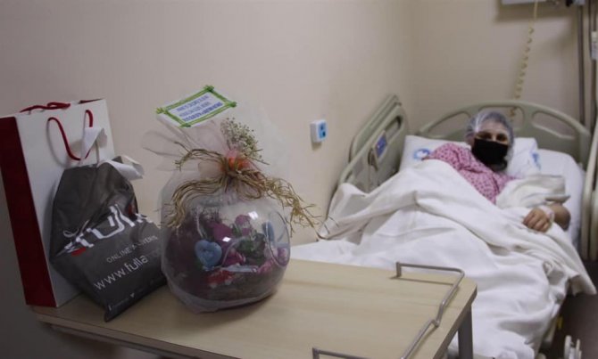 Hastane Başhekim Yardımcısı Uz. Dr. İbrahim Aslan ve Hastane Sağlık Bakım Hizmetleri Müdürü Çiğdem Zeren, anne ve bebeği odalarında ziyaret edip çeşitli hediyeler verip, bebeğe hayırlı, uzun ömürler dilediler.